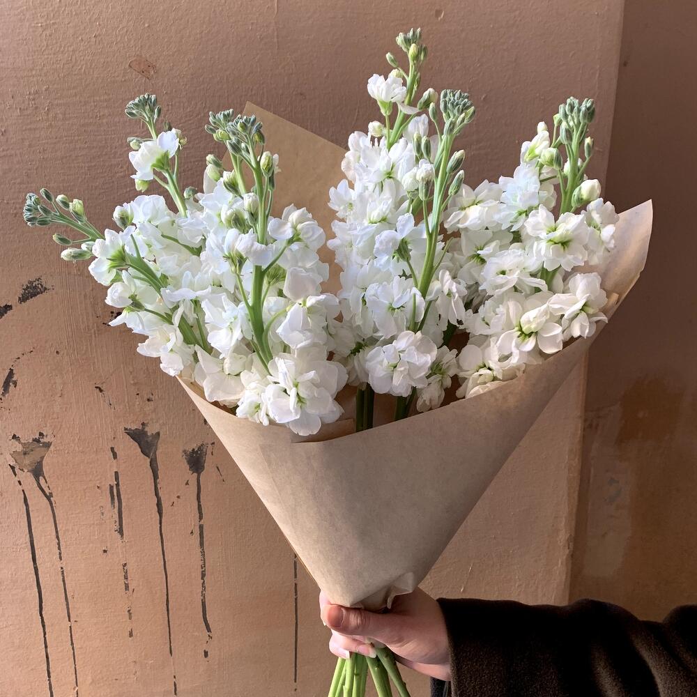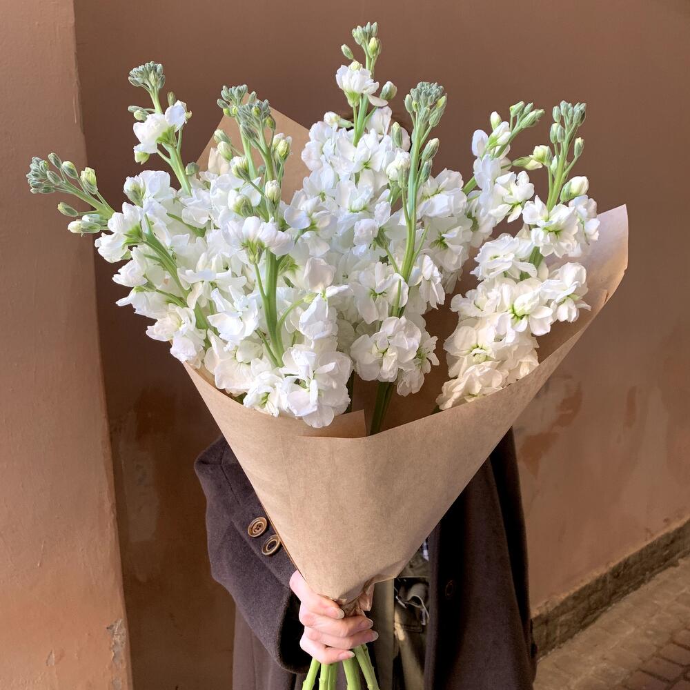 Крафт упаковка – 1 шт.Маттиола белая – 9 шт.