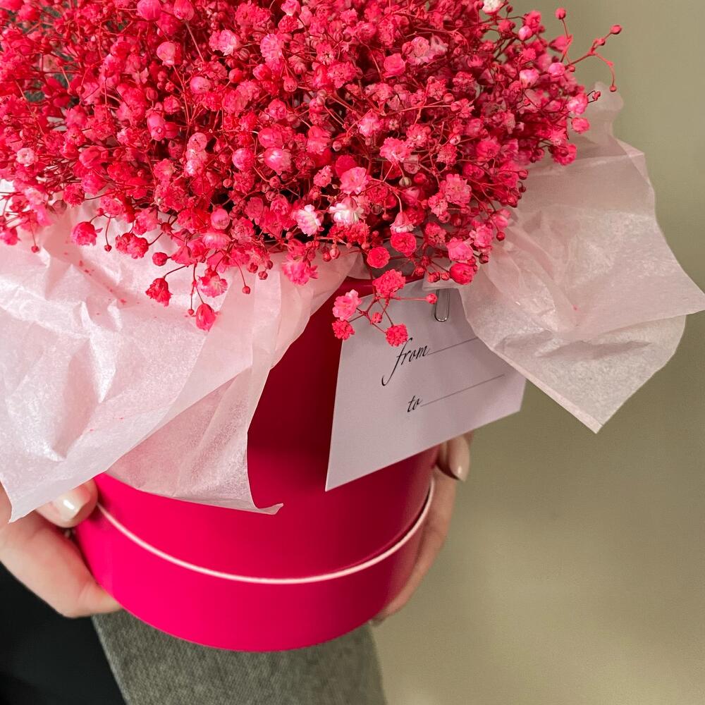 Гипсофила – 3 шт.Тишью – 1 шт.Шляпная коробка – 1 шт.