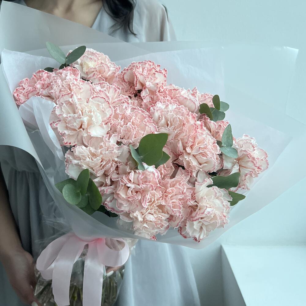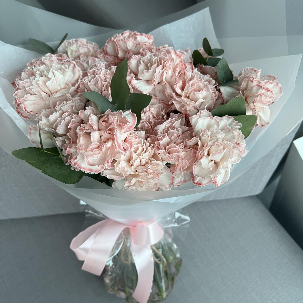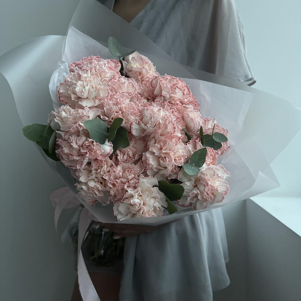 25 розовых гвоздик с эвкалиптом (букет N 27)