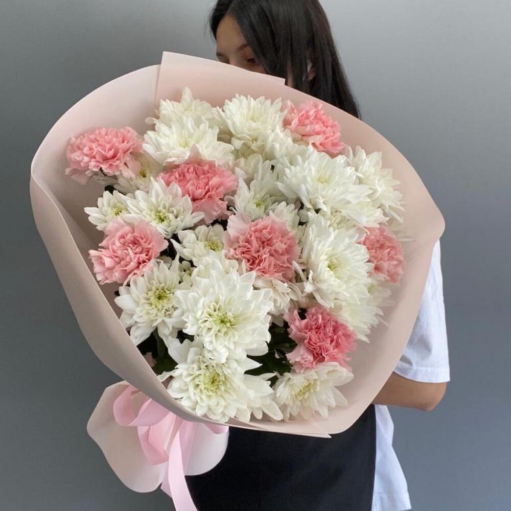 Альстромерии, Гвоздики, Кустовые розы, Лизиантусы, Розы, Хризантемы