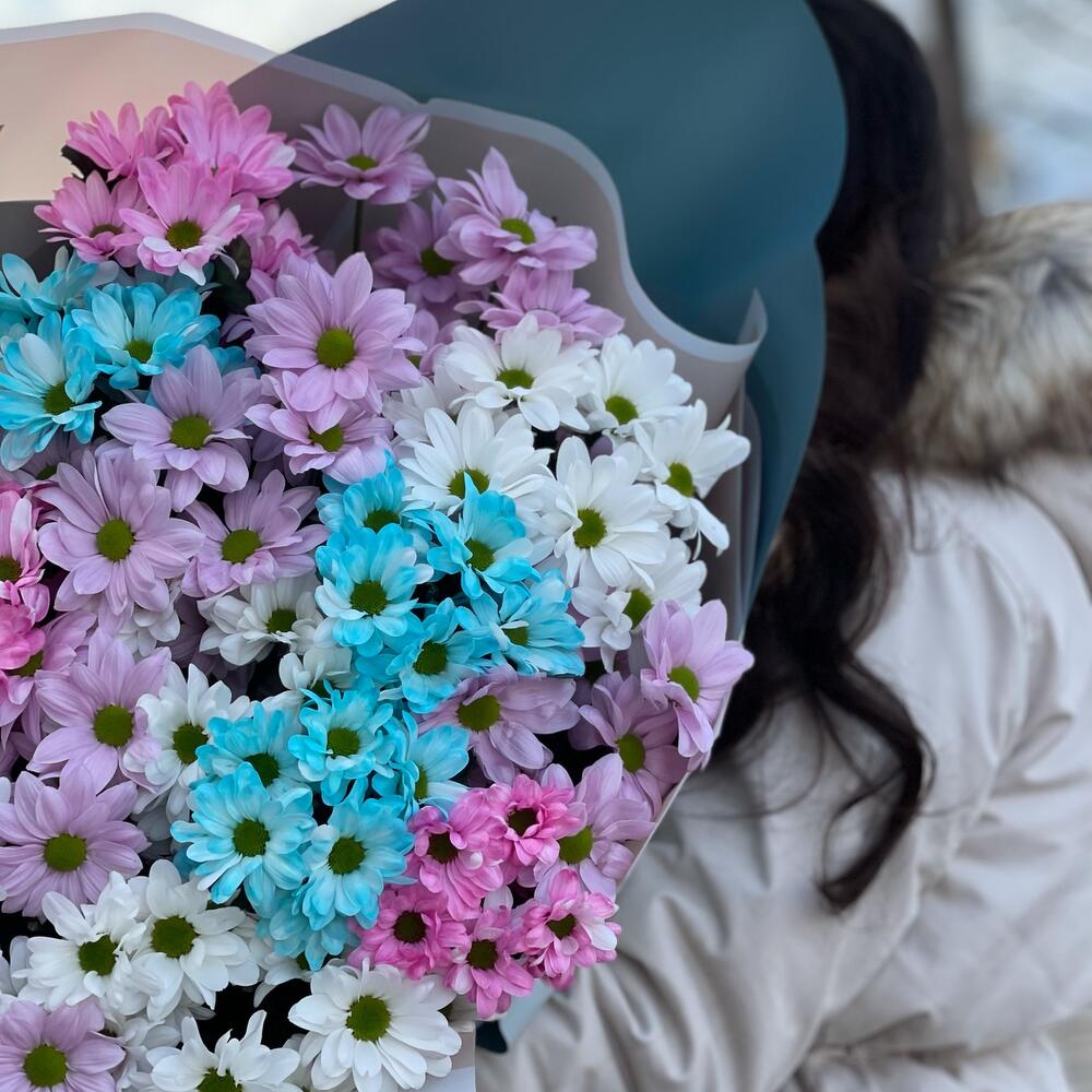 Хризантема кустовая – 19 шт.Упаковка дизайнерская – 2 шт.Лента – 1 шт.