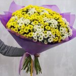 Букет из 49 кустовых хризантем Сантини в стильной упаковке