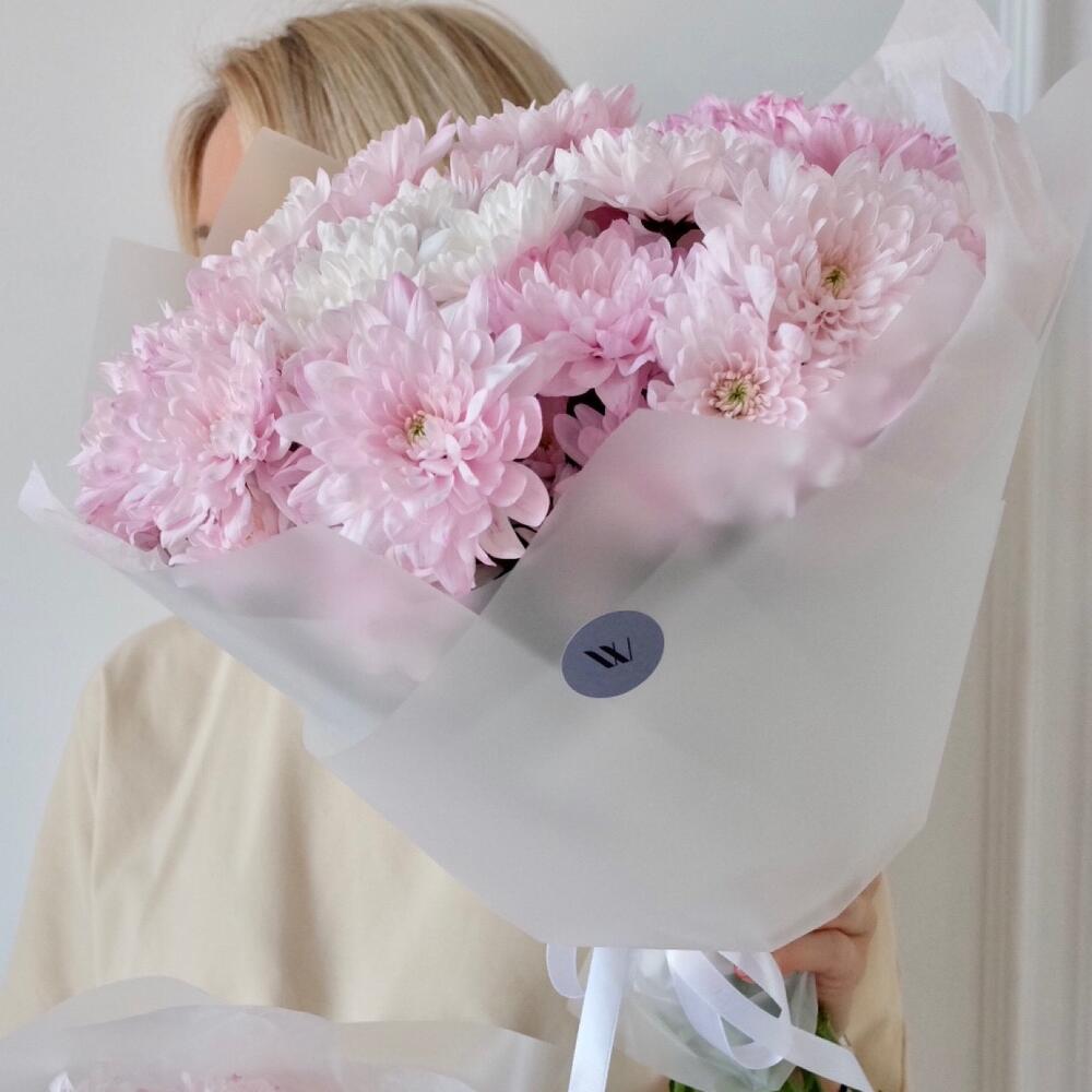 Хризантема кустовая – 7 шт.Тишью – 1 шт.Упаковка дизайнерская – 1 шт.Открыточка с вашими пожеланиями – 1 шт.