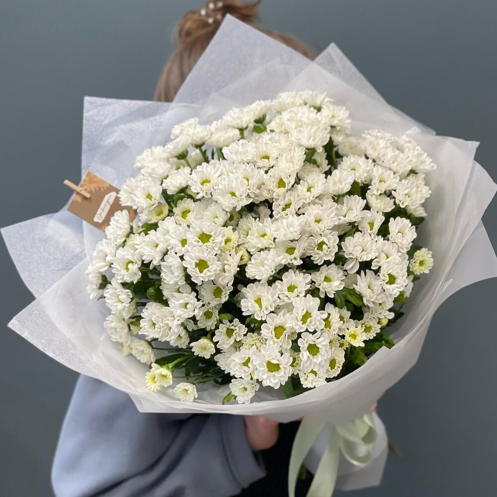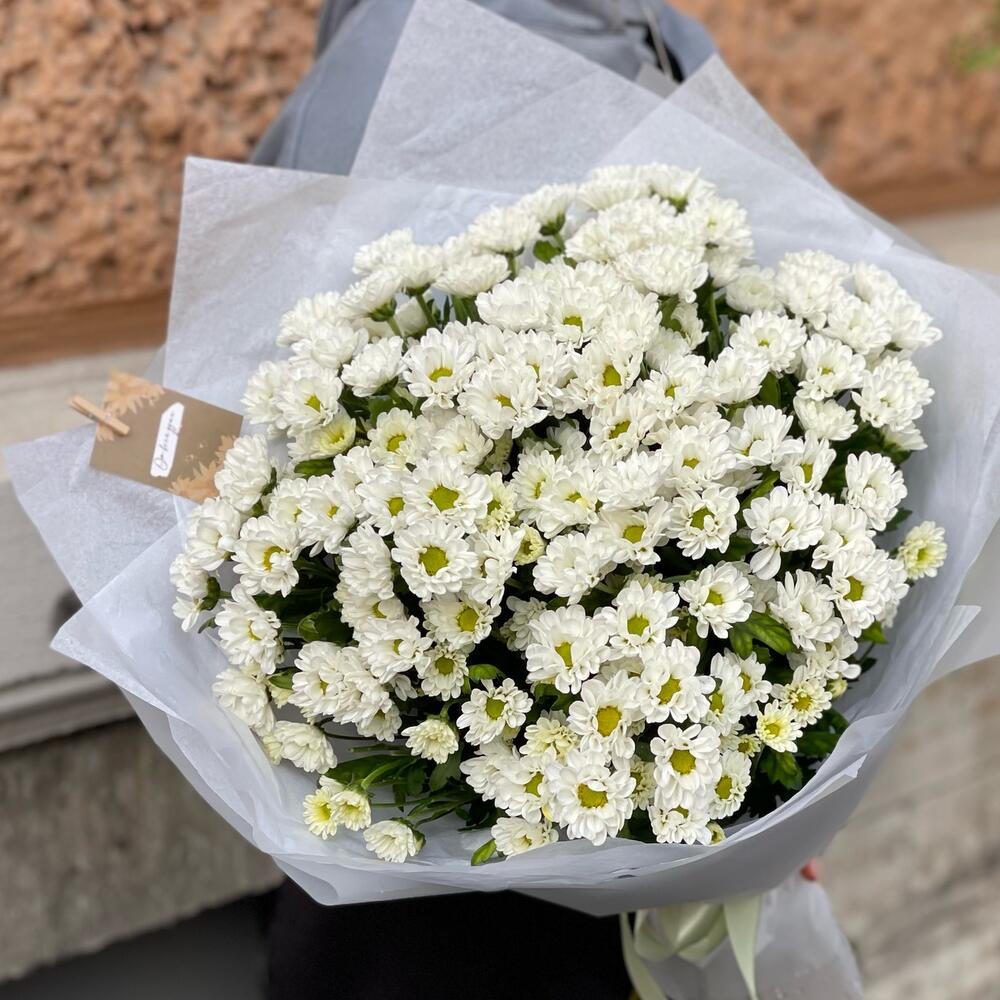 Хризантема Сантини – 15 шт.Упаковка дизайнерская – 1 шт.Открыточка с вашими пожеланиями – 1 шт.
