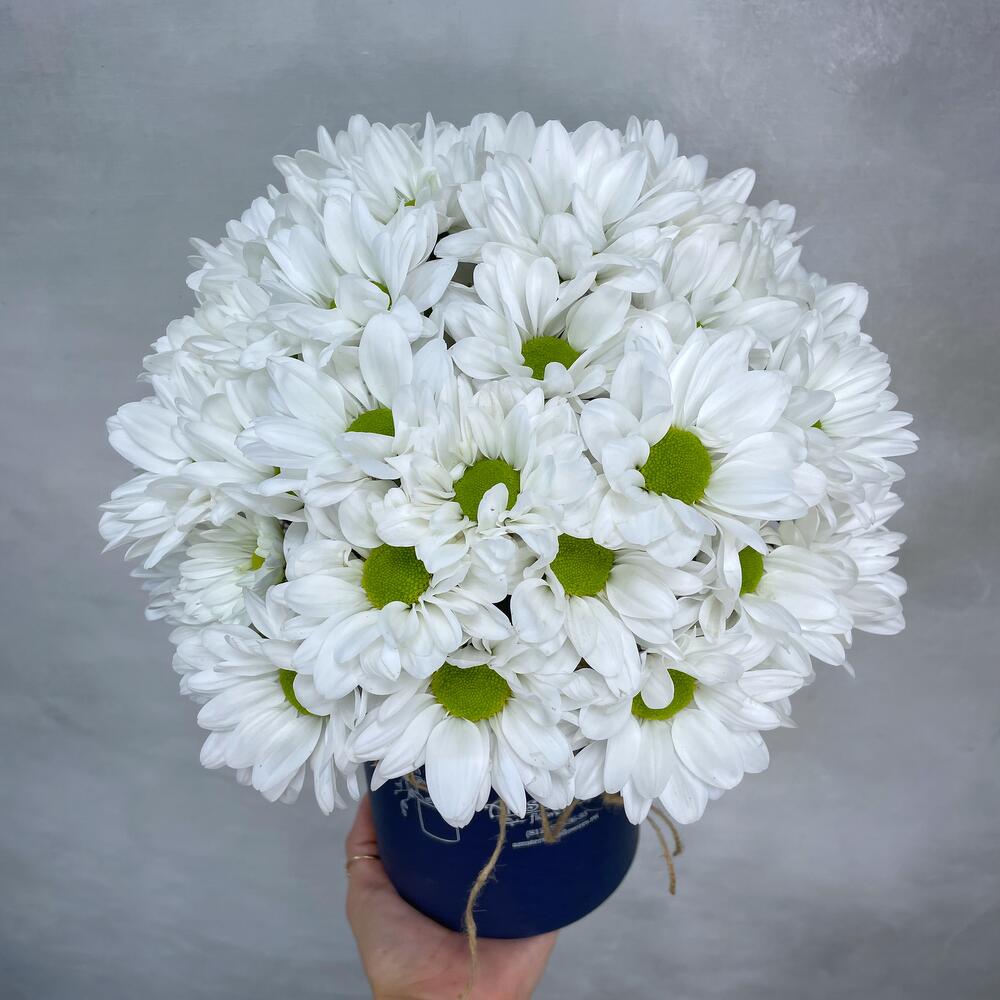 Нежная композиция стойких хризантем. Стильный подарок-комплимент по любому поводу. В подарок маме, сестре, коллеге, девушке.