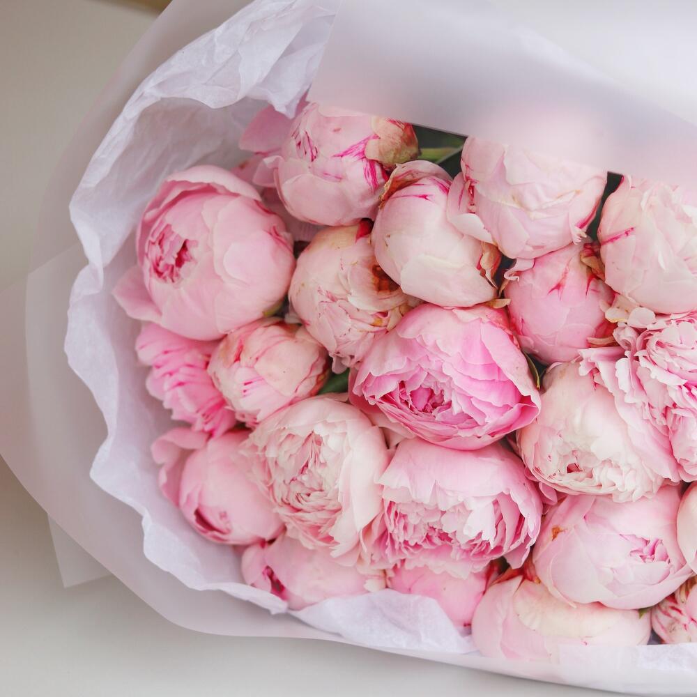Розовый пион – 25 шт.Дизайнерская упаковка – 1 шт.Транспортировочная коробка – 1 шт.инструкция по уходу за цветами – 1 шт.подкормка для срезанных цветов – 1 шт.Открыточка с вашими пожеланиями – 1 шт.Шоколадка – 1 шт.