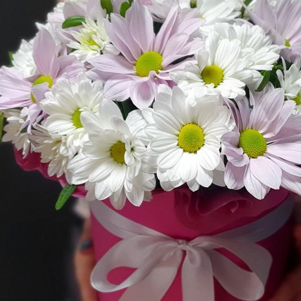 Лента атласная – 1 шт.Шляпная коробка – 1 шт.ромашки кустовые – 25 шт.витаминная губка – 1 шт.