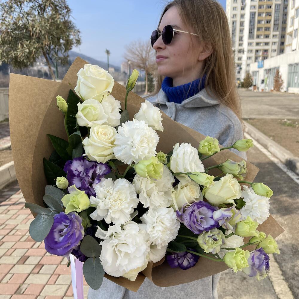 Категорий: Гвоздики, Диантус, Лизиантусы, Розы, Эвкалипт, Эустома