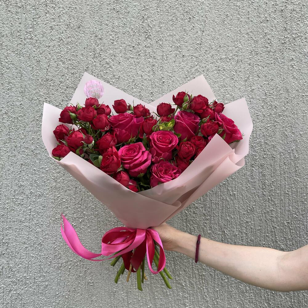 Наш авторский букет микс представляет собой уникальную композицию из одноголовых и кустовых роз, которая будет прекрасным подарком для любого особого случая или просто для того, чтобы порадовать близкого человека.