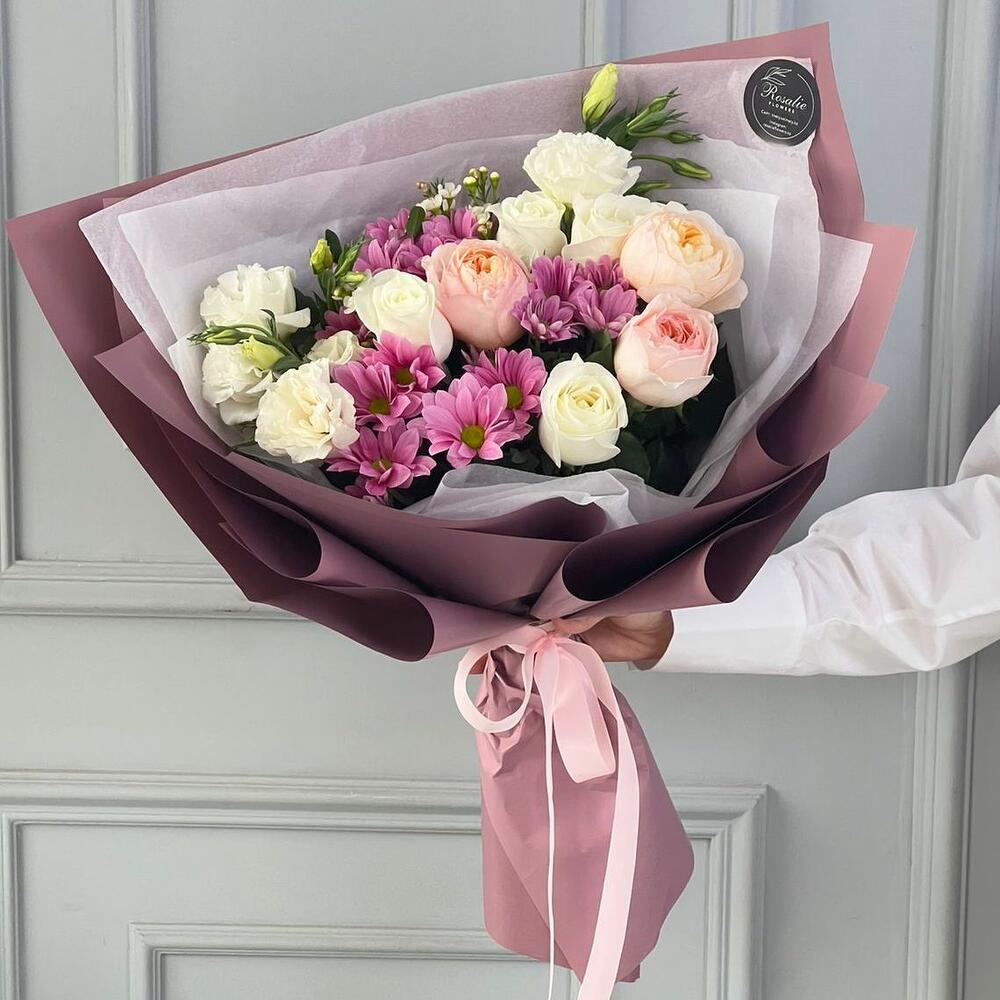 Гвоздики, Кустовые розы, Лизиантусы, Пионовидные розы, Розы