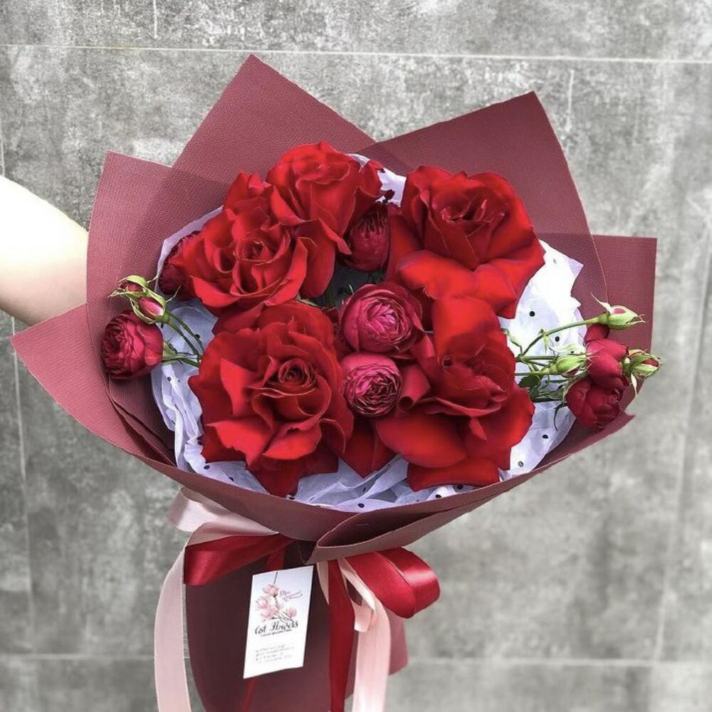 Кустовые розы, Лизиантусы, Пионы, Розы, Хризантемы