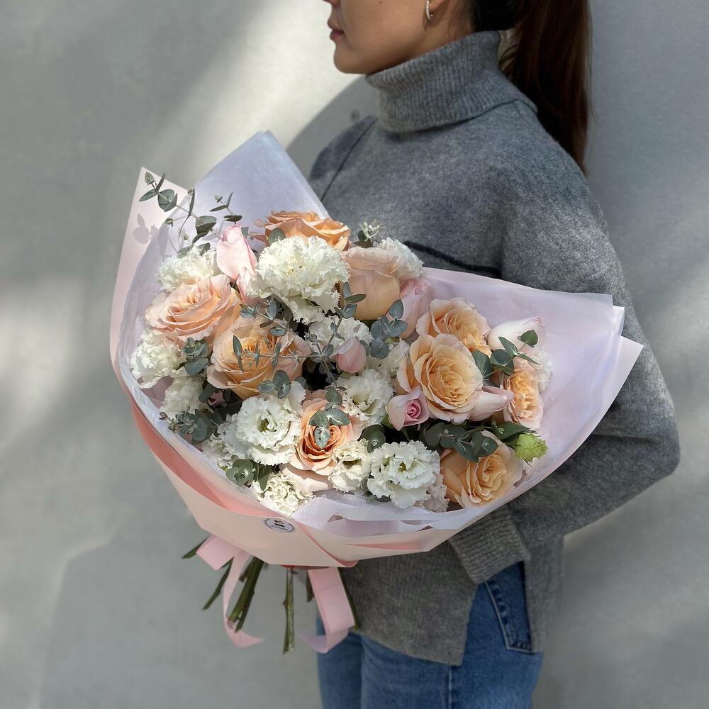 Гвоздики, Кустовые розы, Пионовидные розы, Розы