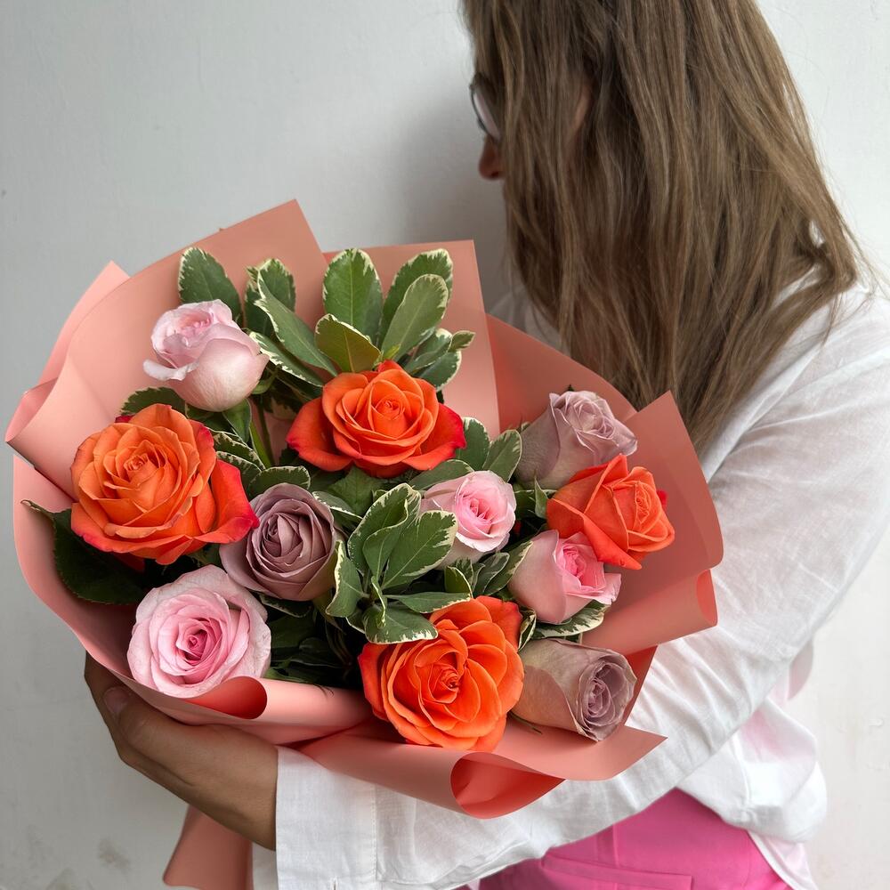 Гвоздики, Кустовые розы, Лизиантусы, Пионовидные розы, Розы