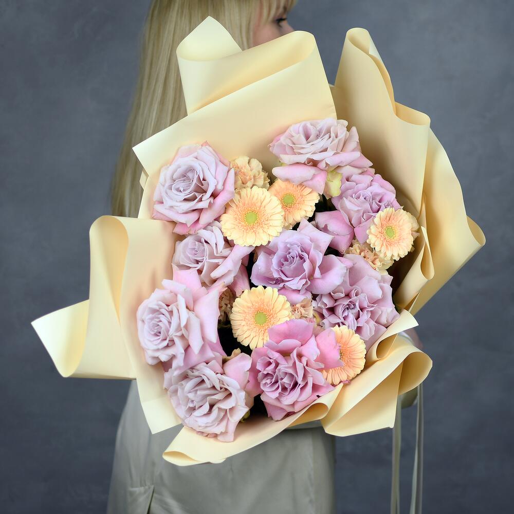 Диантус кремовый – 7 шт.гермини кремовая – 5 шт.роза французская фейт – 9 шт.