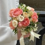 Роза кустовая – 3 шт.Роза одноголовая – 7 шт.Лента атласная – 3 шт.Фисташка – 2 шт.Роза Джульетта – 2 шт.