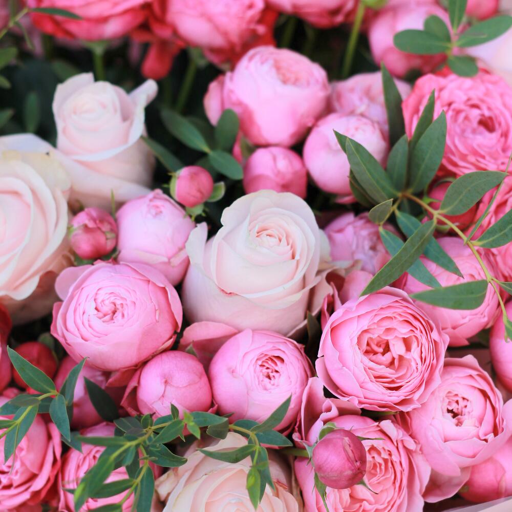 Кустовые розы, Лизиантусы, Пионовидные розы, Розы