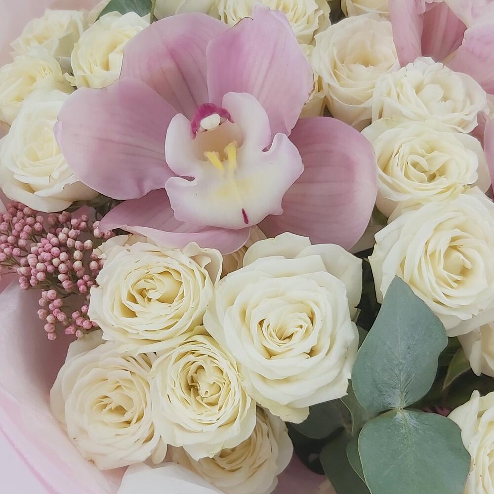 Букет с орхидеями и кустовыми розами Балет