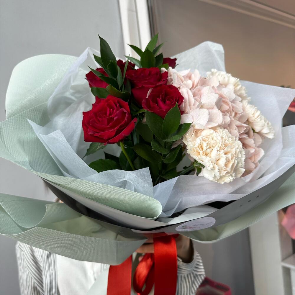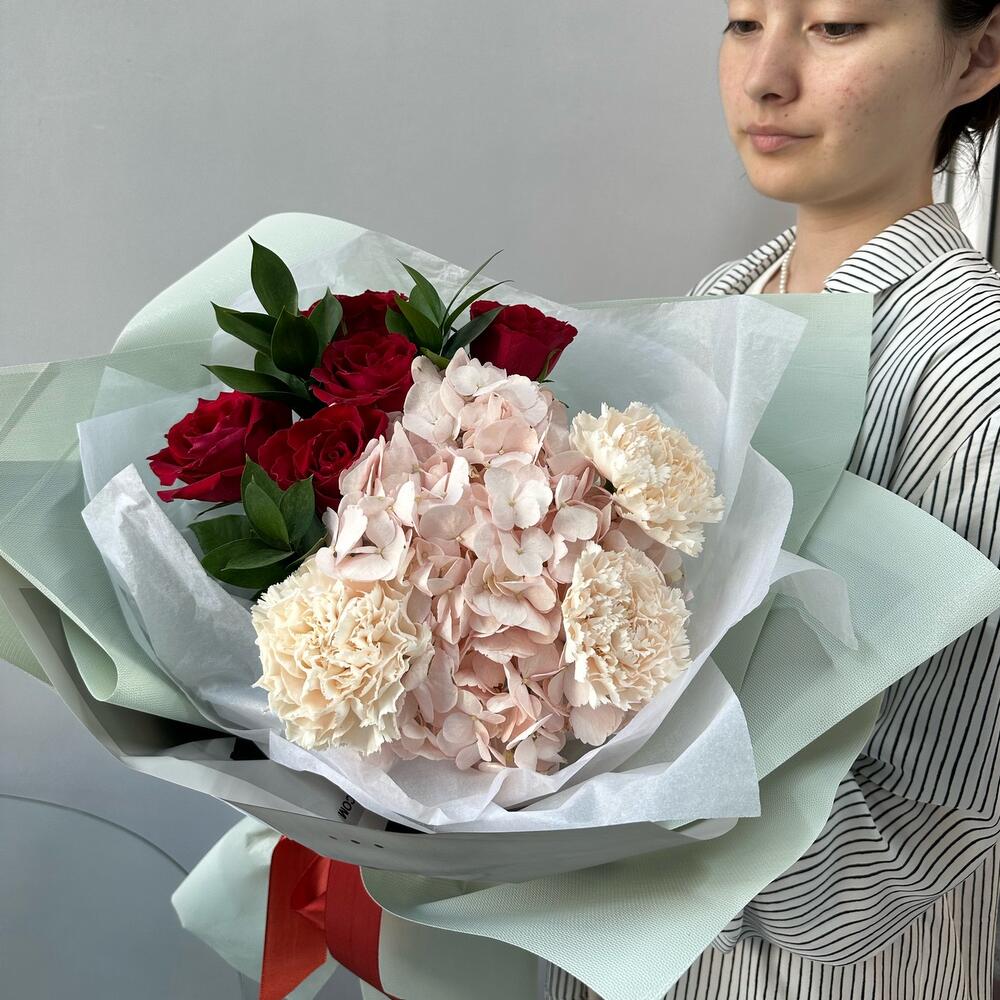 Гвоздики, Кустовые розы, Лизиантусы, Пионовидные розы, Розы