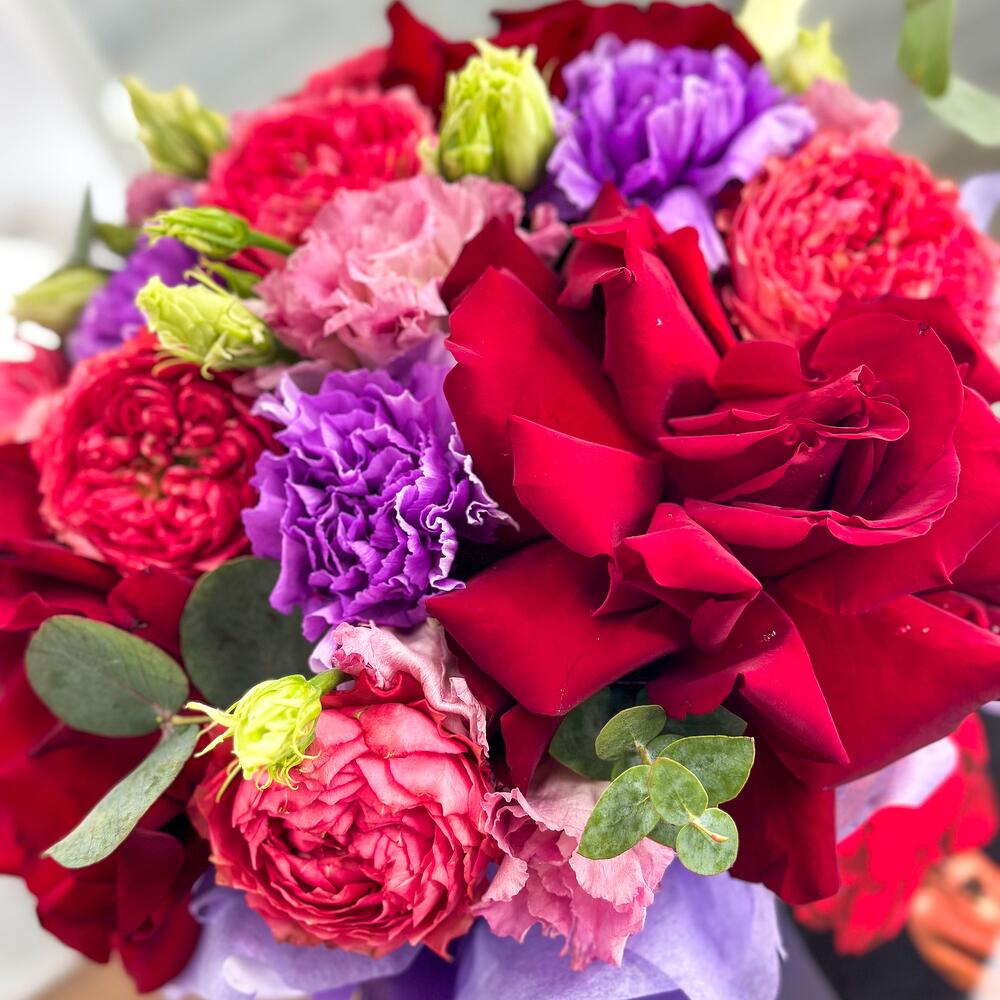 Категории: Гвоздики, Лизиантусы, Пионовидные розы, Розы