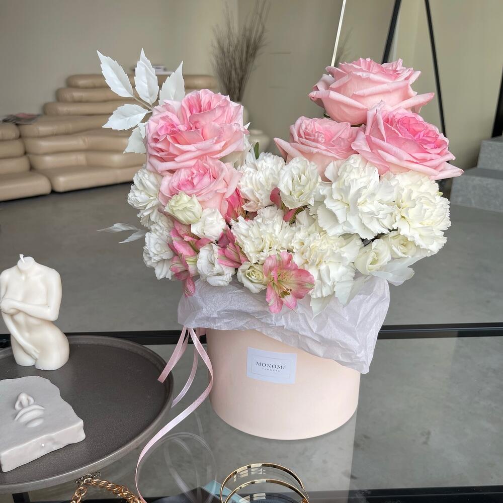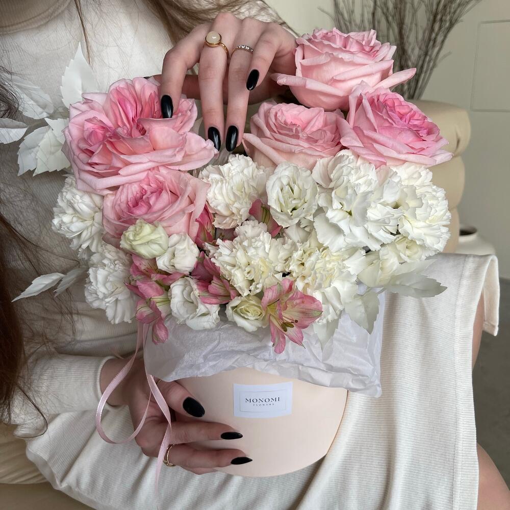 “В твоих глазах”: нежная шляпная коробка с французскими розами