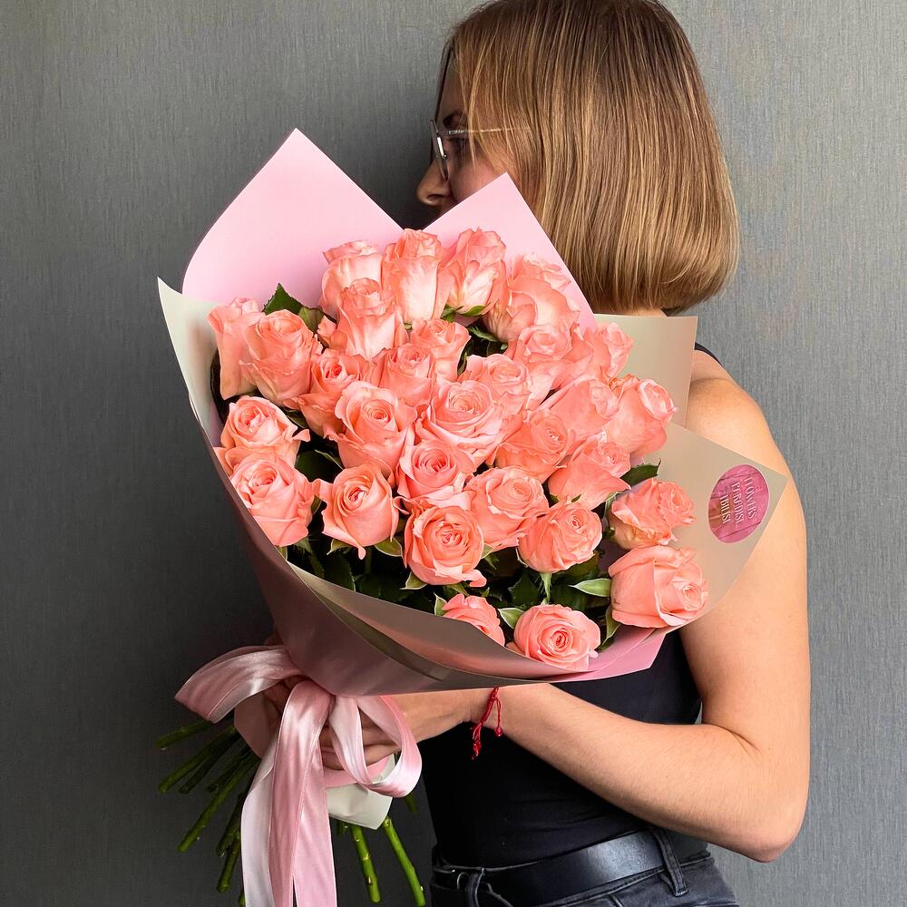 Роза – 29 шт. Упаковка – 1 шт. Атласная лента – 1 шт.