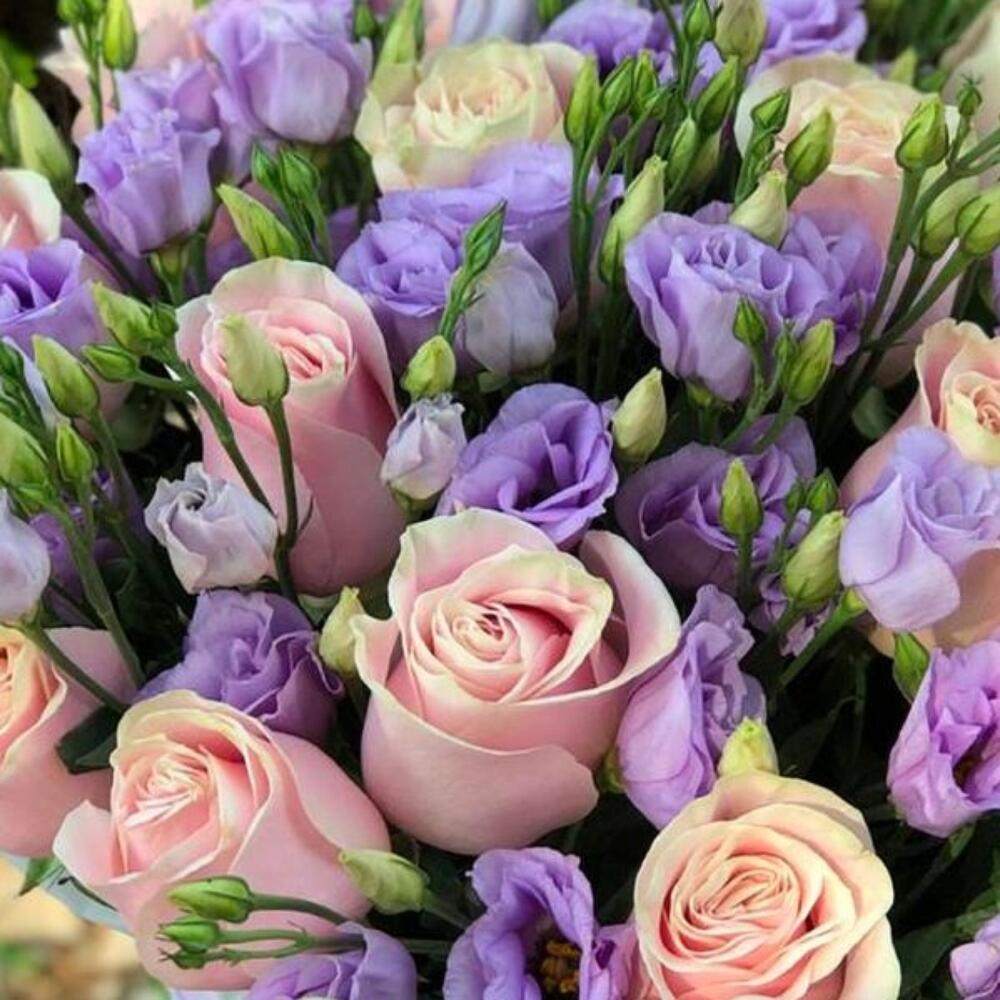 Гвоздики, Лизиантусы, Розы, Тюльпаны