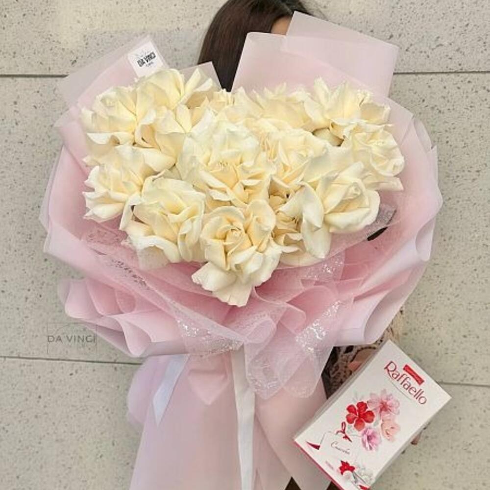 Сет "Nika" букет из 15 вывернутых роз и Raffaello. Заказав букет с доставкой от Da Vinci, Вы скрасите день обладательницы букета и подарите ей незабываемые эмоции.