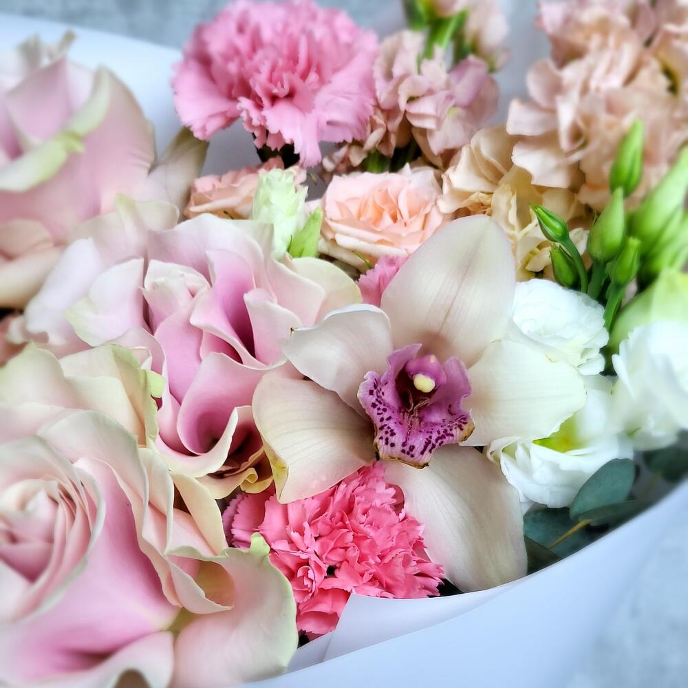 Гвоздики, Кустовые розы, Лизиантусы, Пионовидные розы, Розы