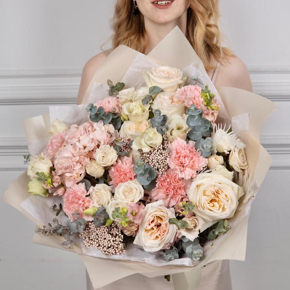 Категорий: Гвоздики, Гортензии, Кустовые розы, Лизиантусы, Пионовидные розы, Розы