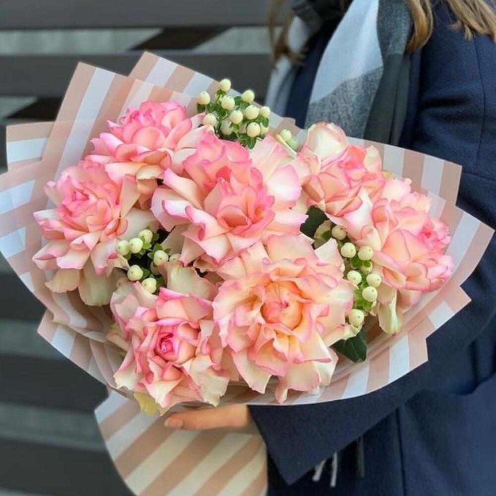Альстромерии, Кустовые розы, Лизиантусы, Пионовидные розы, Розы, Ромашки