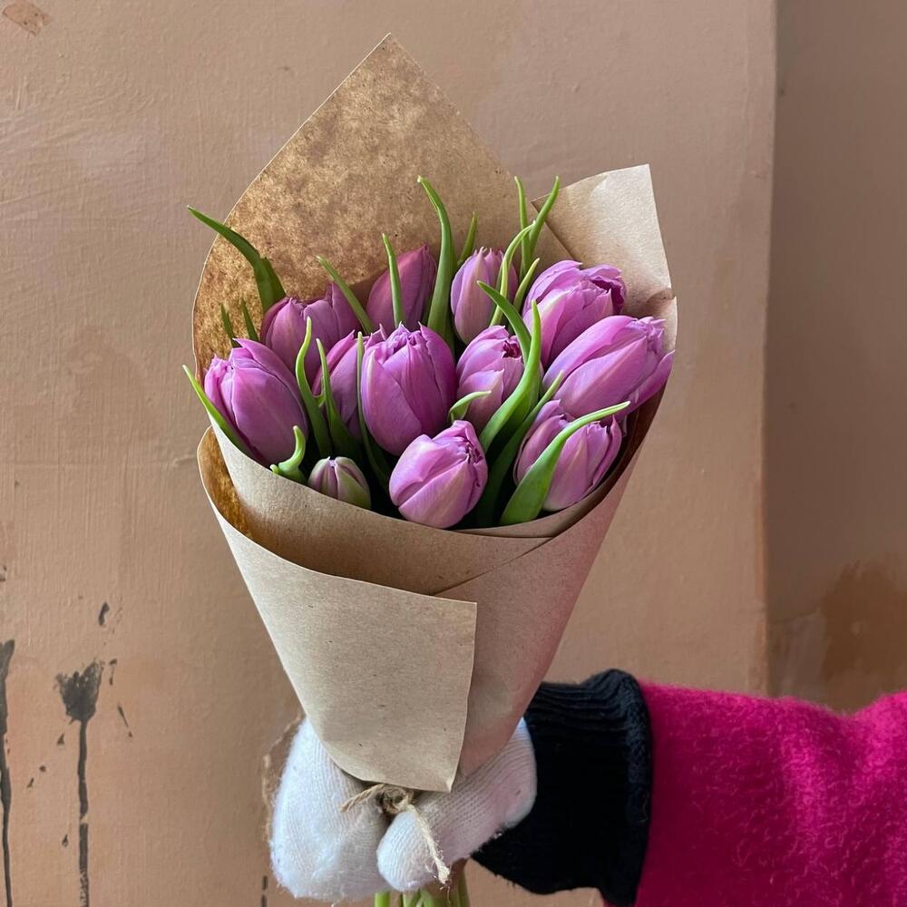 Крафтовая упаковка – 1 шт.сиреневый пионовидный тюльпан – 13 шт.
